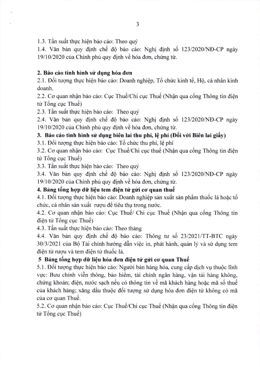 Theo đó, kể từ ngày 15/7/2022, hàng tháng/quý, người nộp thuế phải thực hiện lập một số loại báo cáo gửi cơ quan thuế như Báo cáo tình hình sử dụng hóa đơn; Báo cáo tình hình sử dụng biên lai thu phí, lệ phí; Bảng tổng hợp dữ liệu tem điện tử gửi cơ quan thuế; Bảng tổng hợp dữ liệu hóa đơn điện tử gửi cơ quan thuế. Cụ thể toàn văn Quyết định như sau: